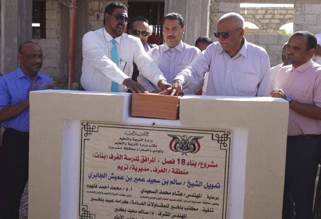 حضرموت اليوم" الوكيل السعيدي يضع حجر الأساس لمشروع بناء مدرسة بمنطقة الغرف بتريم..