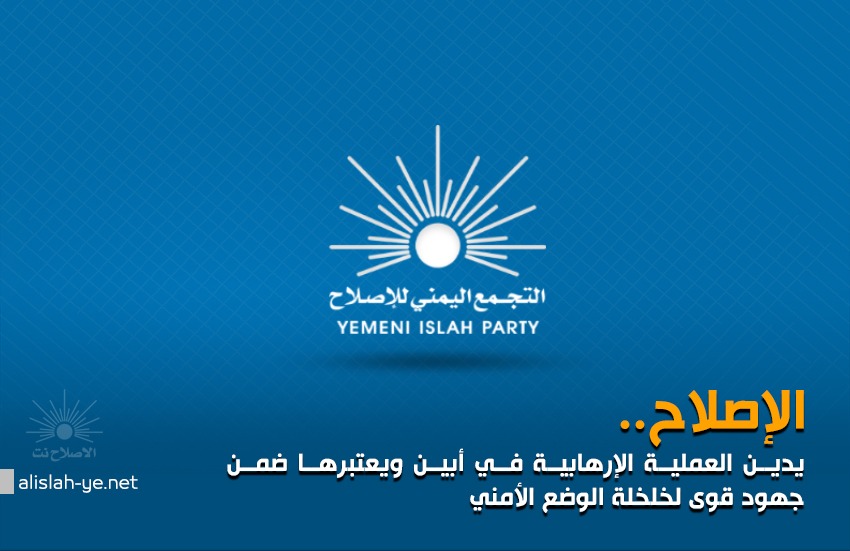أدان التجمع اليمني للإصلاح العملية الإرهابية التي حدثت اليوم الثلاثاء في محافظة أبين، والتي راح ضحيتها