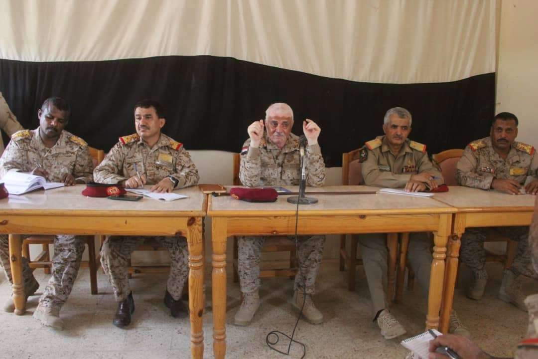رأس قائد المنطقة العسكرية الاولى قائد اللواء 37 مدرع اللواء الركن / صالح محمد طيمس بمقر قيادة المنطقة