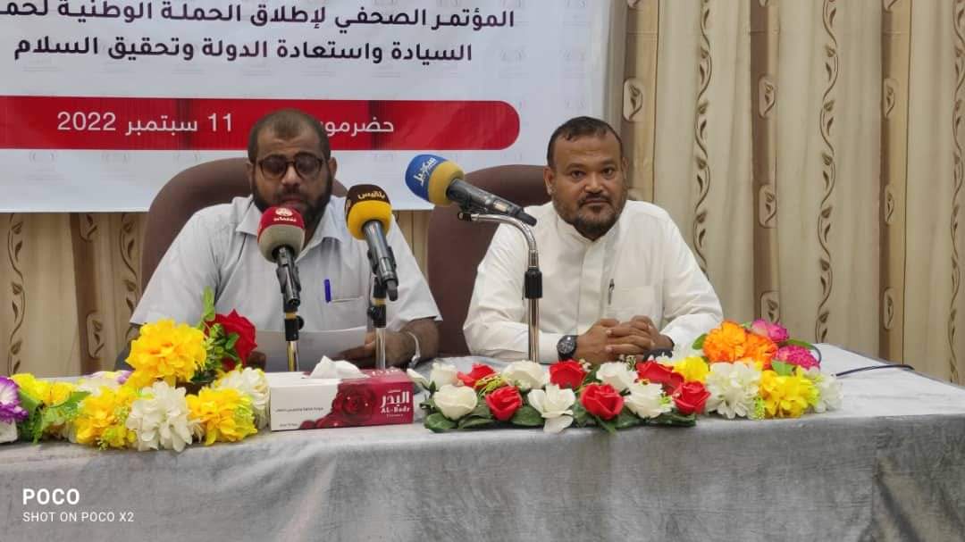 اعلن في مدينة سيئون بمحافظة حضرموت الحملة الوطنية لحماية السيادة واستعادة الدولة وتحيق السلام والتي ينظمها