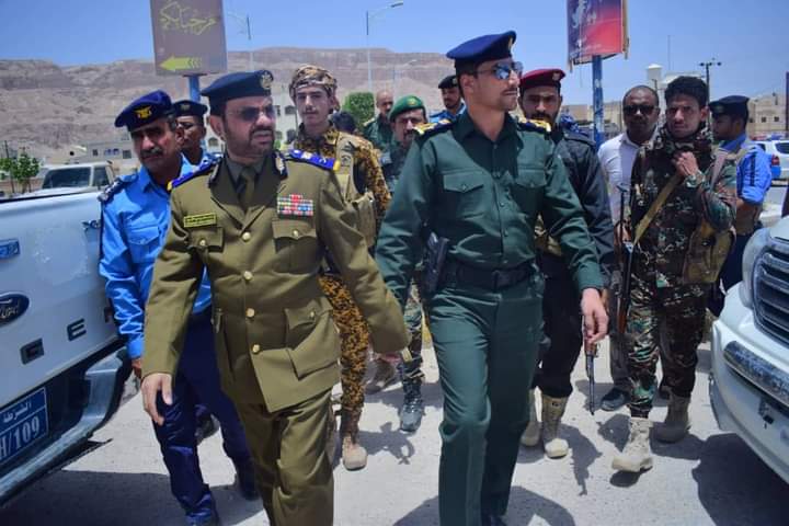 دشن وكيل أول وزارة الداخلية اللواء الركن محمد بن عبود الشريف ومعه مدير عام شرطة وادي حضرموت والصحراء العميد