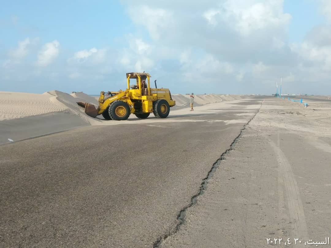 تستمر الفرق الفنية أعمال مشروع إزاحة الرمال من الخط الدولي الرابط بين العاصمة عدن والمحافظات الشرقية وسلطنة