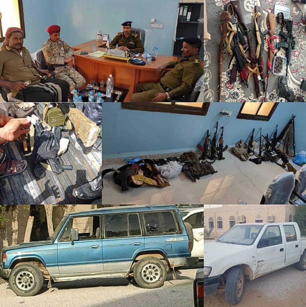 ضبطت الأجهزة الأمنية بمديريات وادي وصحراء حضرموت في مدينة تريم ثمانية اشخاص بحوزتهم عدد من الاسلحة الخفيفة