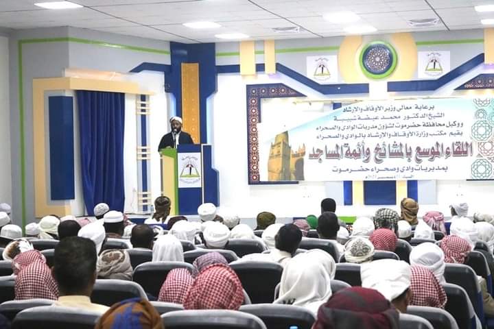 عقد لقاء موسع بالمشائخ وأئمة المساجد بمديريات وادي وصحراء حضرموت بحضور معالي وزير الاوقاف ....