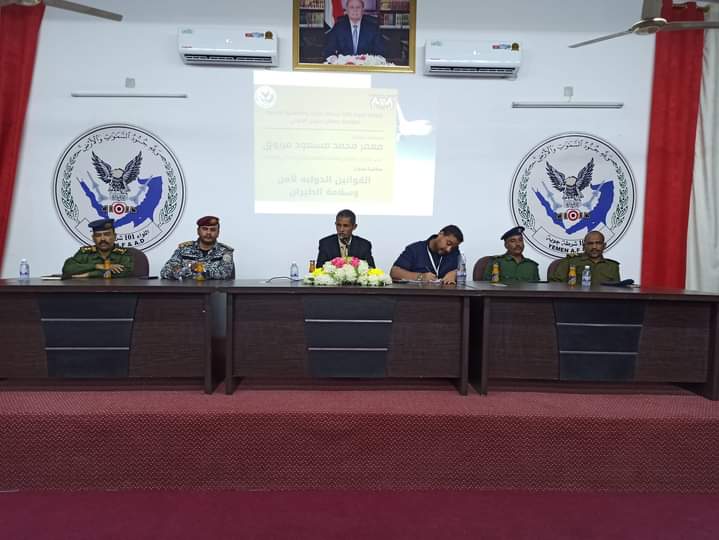 محاضرة بعنوان "القوانين الدولية لأمن وسلامة الطيران " بمقر اللواء 101شرطة جوية بمحافظة حضرموت...