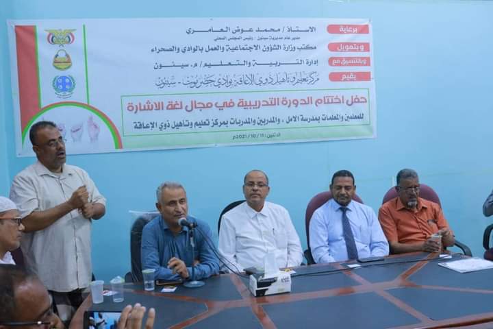 اختتم مركز تعليم وتأهيل ذوي الإعاقة بوادي حضرموت اليوم بسيئون، دورة تدريبية في مجال لغة الإشارة للمعلمين