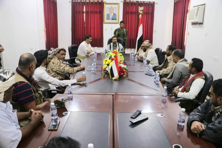ناقش وزير الداخلية اللواء الركن ابراهيم حيدان، اليوم، بمقر حماية الشركات النفطية، بمديرية غيل بن يمين، مع