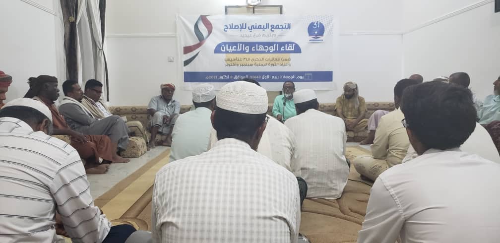 عقد التجمع اليمني للإصلاح بمديرية تريم منطقة عيديد مساء أمس الجمعة 8 أكتوبر لقاء موسعا بوجهاء وأعيان