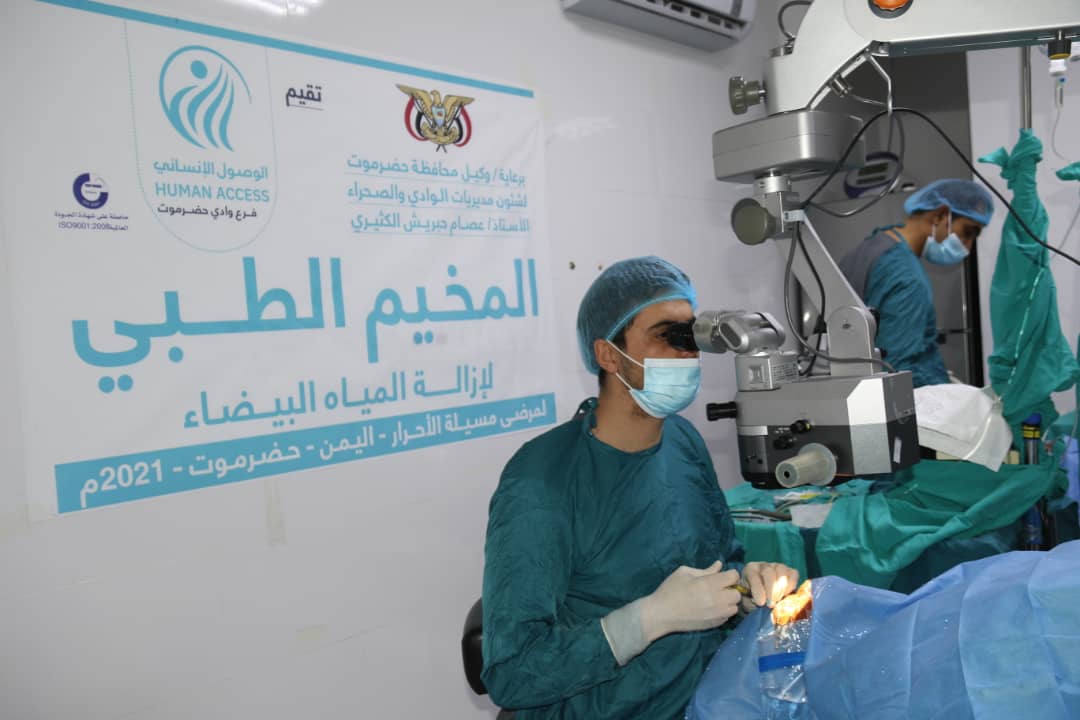 نفذت الوصول الإنساني بوادي حضرموت المخيم الطبي المجاني للعيون لإزالة المياه البيضاء ، برعاية كريمة من