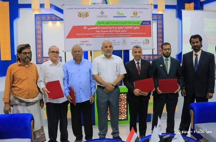 وقـّع اليوم بمدينة سيئون اتفاقية تنفيذ مشروع معلمات الريف في مديرية رخية بحضرموت (مساق الدبلوم) بين مؤسستي