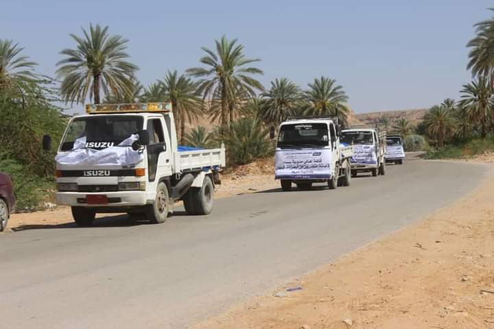 سير أهالي مدير ساه، مساء السبت، قافلة إغاثية عاجلة إلى مدينة تريم، دعما للمتضررين من السيول والأمطار التي
