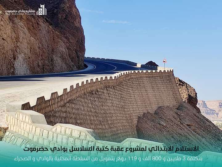 جرى يوم الأحد الاستلام الابتدائى لمشروع عقبة كتبة السلاسل الرابطة بين مديريتي تريم و القف بوادي حضرموت
