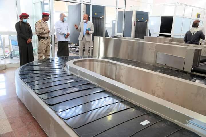 وكيل وادي حضرموت عصام الكثيري يدشن عمل سيور العفش الإلكترونية بمطار سيئون الدولي ...