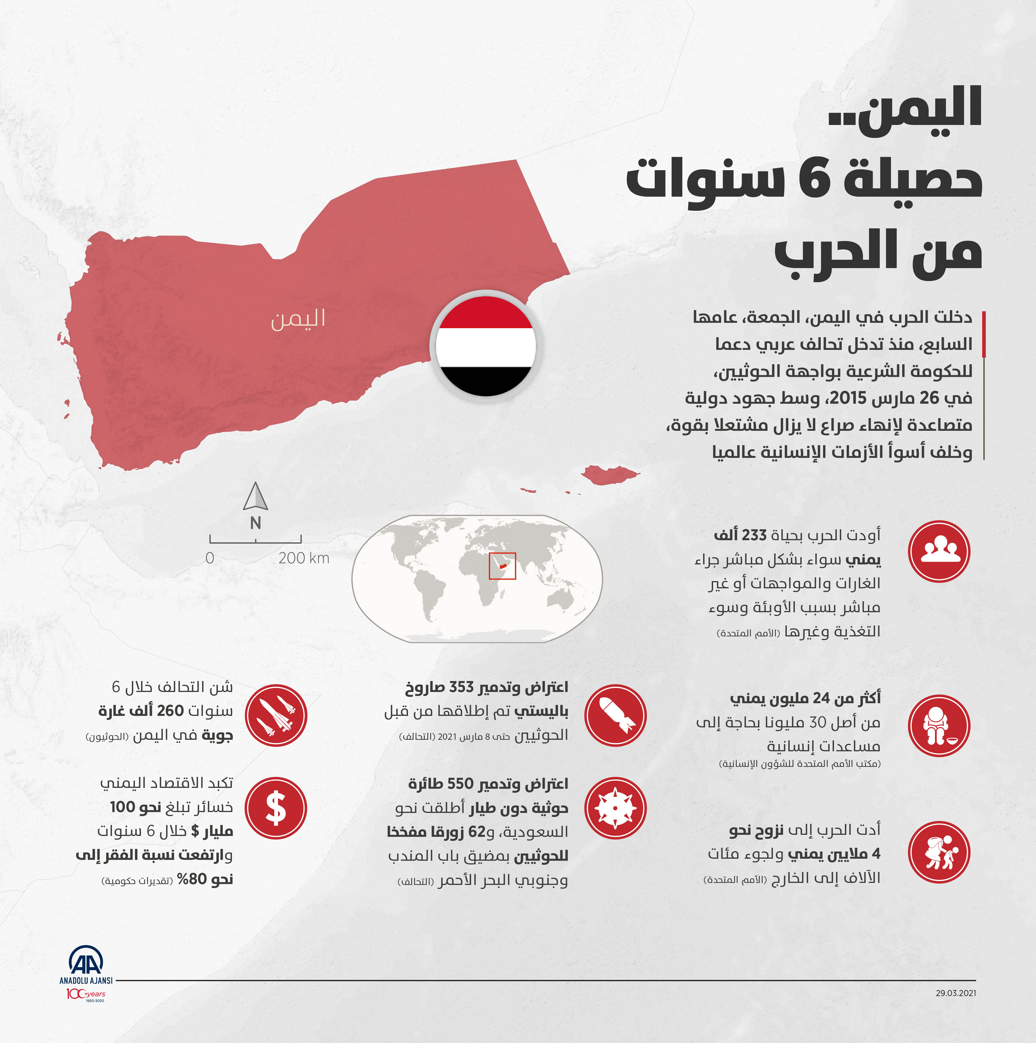 دخل اليمن عامًا سابعًا من العمليات العسكرية للتحالف العربي بقيادة السعودية، دعمًا لقوات الحكومة اليمنية