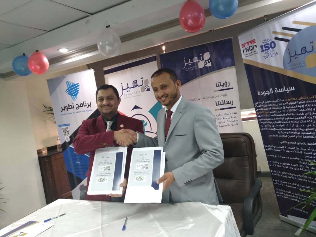 مسؤول العلاقات باتحاد الملتقيات الشبابيه التطوعيه بوادي حضرموت والصحراء يوقع عقد شراكه مع شركة تميز للتطوير والتدريب بالقاهره ...