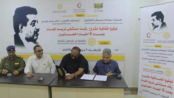 وقّع اليوم بمديرية تريم في محافظة حضرموت اتفاقية مشروع رفد مستشفى تريم العام بعدد 6 أطباء أخصائيين بين