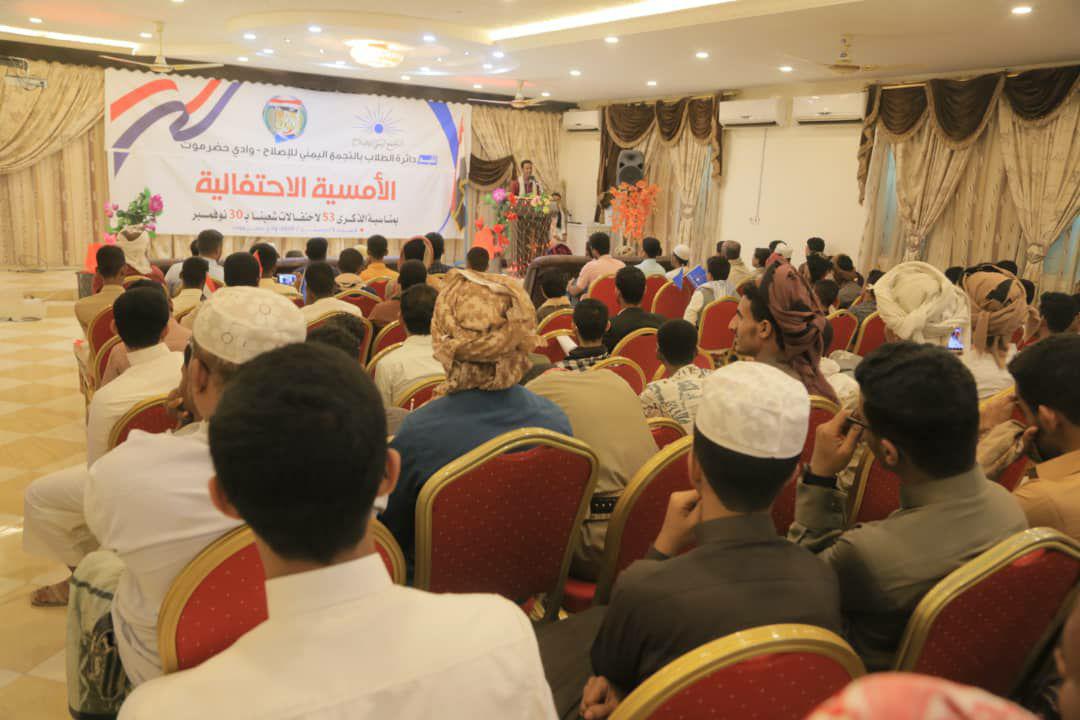 قال عبدالرحمن صالح عوض فرج التهاني، في كلمة دائرة طلاب اصلاح وادي حضرموت، في احتفالية بمناسبة الذكرى ٥٣