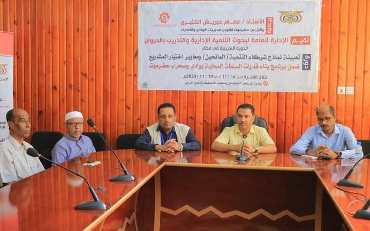 تدريب 34 من كوادر السلطة المحلية بوادي حضرموت والصحراء على تعبئة نماذج شركاء التنمية " المانحين ".