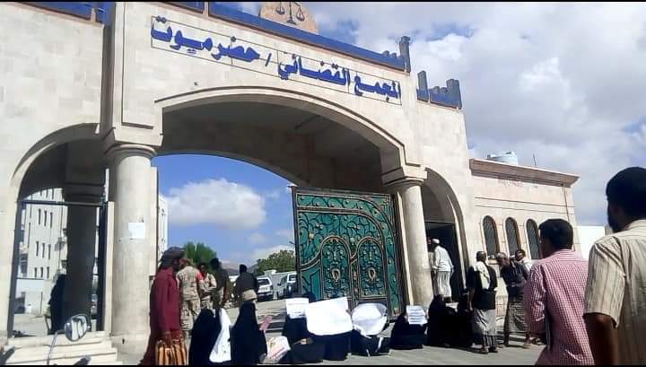 نظم عدد من أهالي المعتقلين وقفة احتجاجية صباح اليوم أمام المجمع القضائي م/ حضرموت بمدينة المكلا ، تنديدا