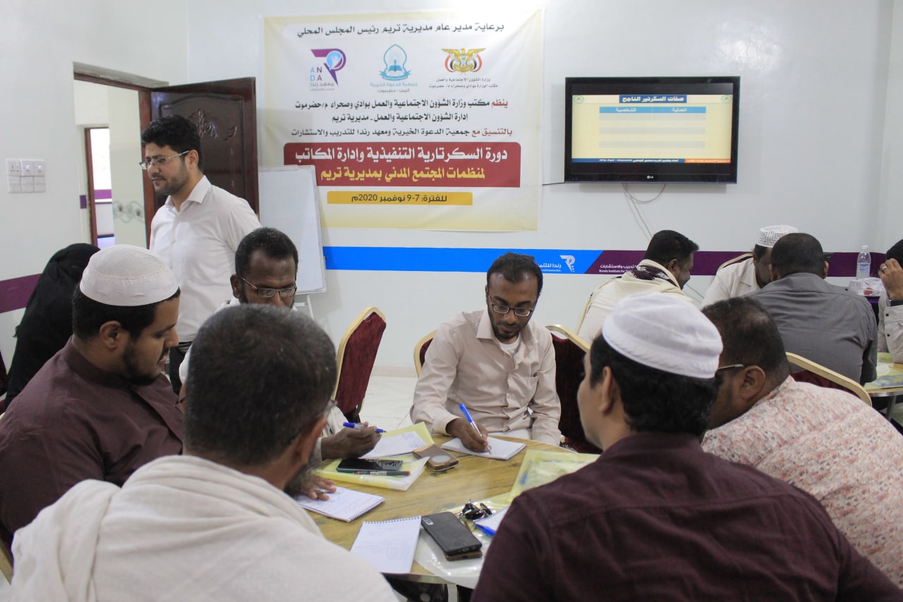 بدأت بمديرية تريم دورة تدريبية في السكرتارية التنفيذية وإدارة المكاتب ، ينظمها مكتب وزارة الشؤون
