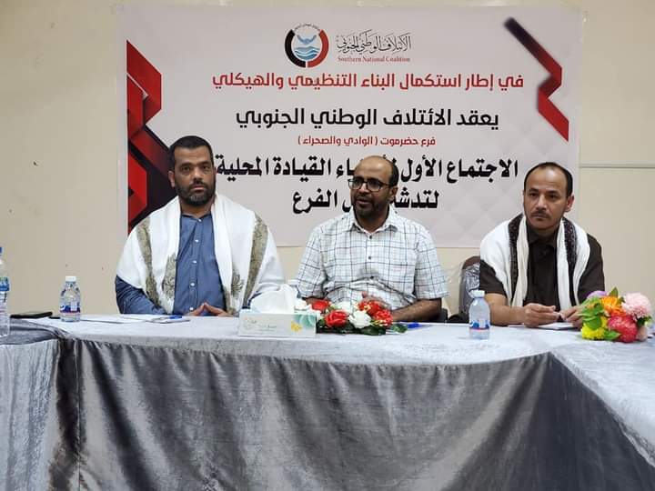 عقد الائتلاف الوطني الجنوبي فرع محافظة حضرموت (الوادي والصحراء)، مساء هذا اليوم بمدينة سيئون، الاجتماع