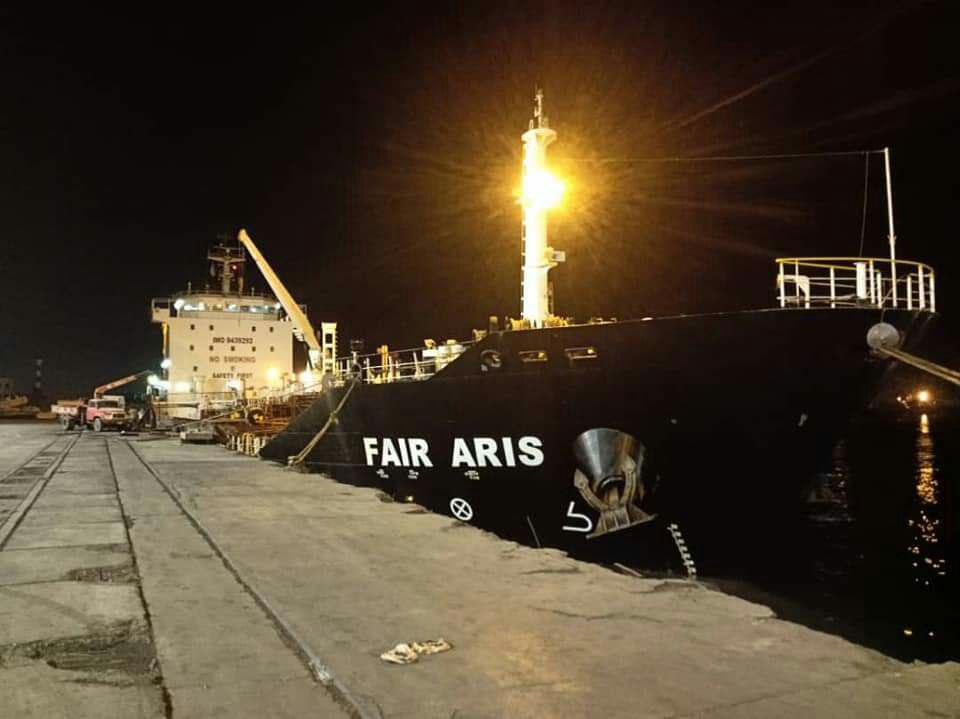 استقبل رصيف ميناء المكلا مساء اليوم الباخرة (MT.FAIR ARIS) التي تحمل على متنها كمية (8,413.701) طن متري من المازوت وهي
