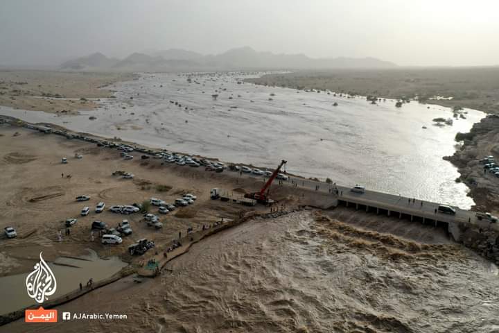 سد مأرب يمتلئ للمرة الأولى.. والسيول تتجاوز منطقة العرقين...