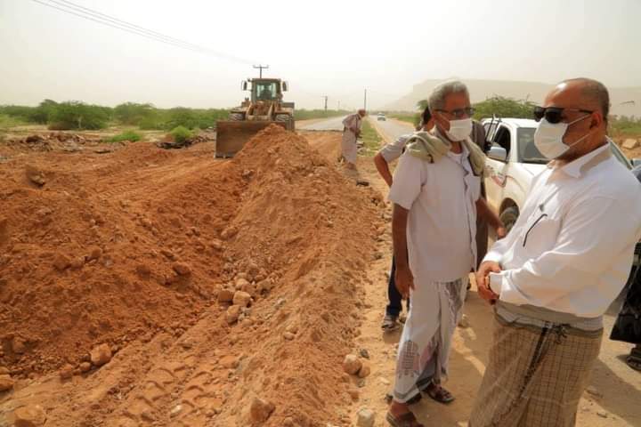 الوكيل الكثيري يطلع على أعمال فتح مجاري السيول و قطع و تهبيط الخط السريع بمديرية سيئون ...