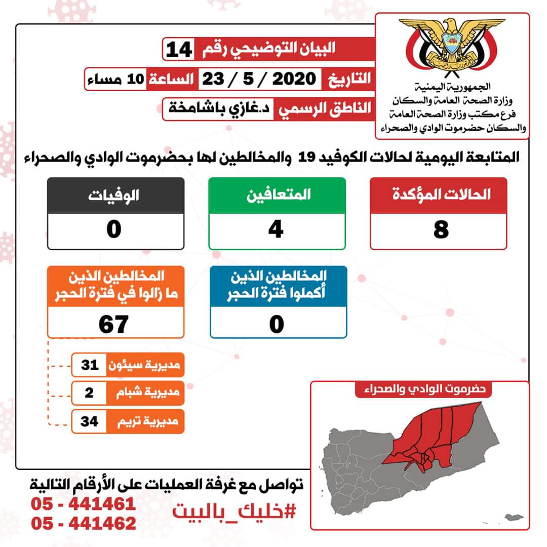 أصدر الناطق الرسمي باسم مكتب الصحة العامة والسكان بوادي حضرموت د. غازي باشامخه بيانه التوضيحي رقم 14 والخاص