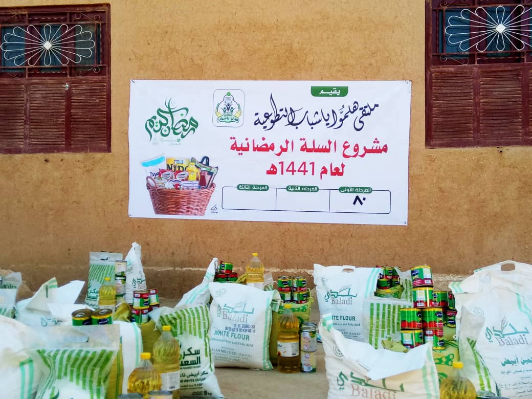 ضمن المشاريع الرمضانية التي ينفذها ملتقى مجالس هلمّوا يا شباب التطوعي لهذا العام 1441هــ ؛ توزيع 80 سلة