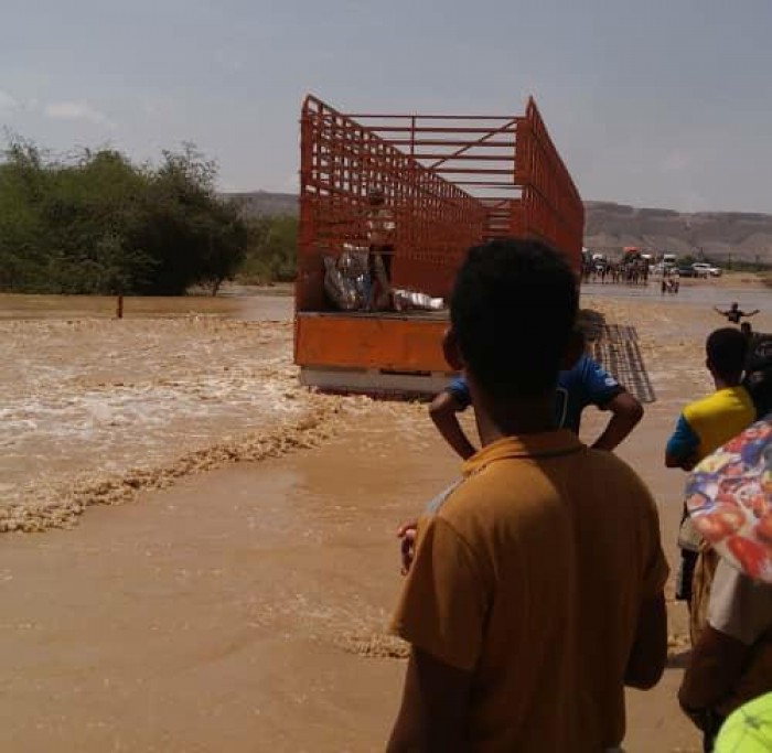 أهالي العقاد بوادي حضرموت ينقذون شخصين جرفتهما السيول..
