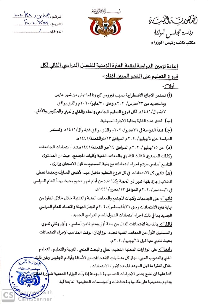 وجه نائب رئيس الوزراء رئيس اللجنة الوطنية العليا للطوارئ الدكتور سالم الخنبشي ، اليوم، باستمرار تعليق