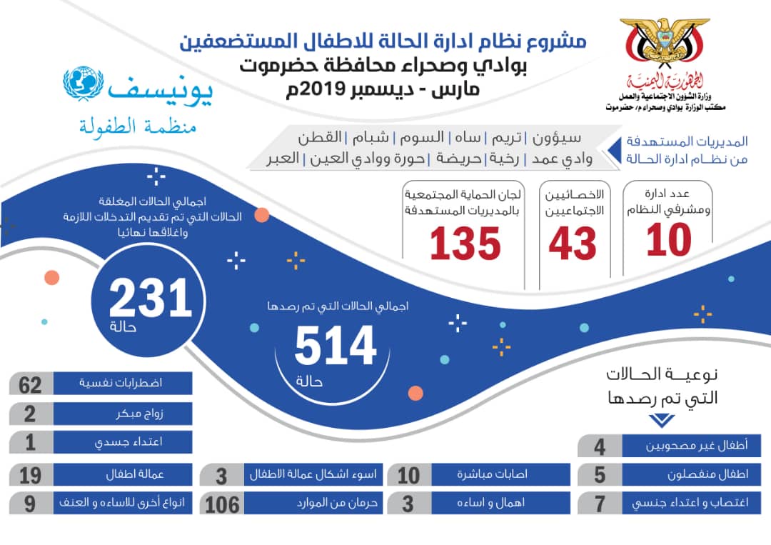 بتكلفة 5 مليون ريال (231) مستفيد من تدخلات نظام إدارة الحالة للاطفال المستضعفين بالوادي والصحراء لعام 2019م