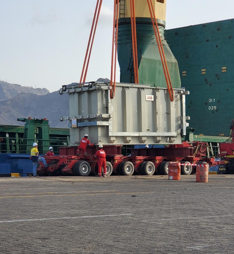وصلت الى ميناء عدن للحاويات، 6 محولات خطوط نقل الطاقة الكهربائية الخاصة بمشروع محطة عدن الجديدة الذي تبلغ