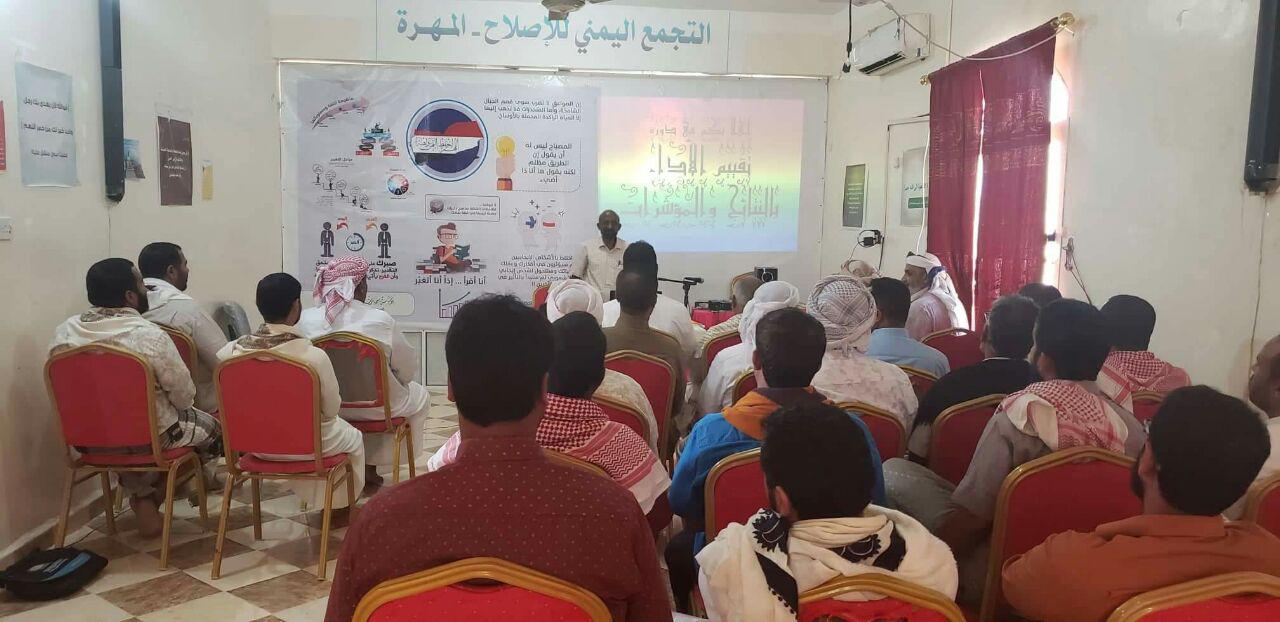 نظم التجمع اليمني للإصلاح بمحافظة المهرة، بحضور رئيس المكتب التنفيذي، مختار محمد الجعفري، دورة تدريبية