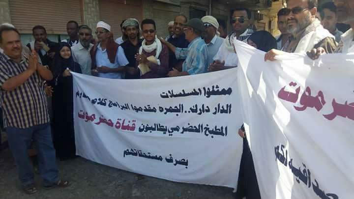 ممثلوا الدراما بحضرموت و طاقم برامج بقناة حضرموت ينفذون وقفة احتجاجية أمام مكتب قناة حضرموت للمطالبة بمستحقاتهم المالية ....