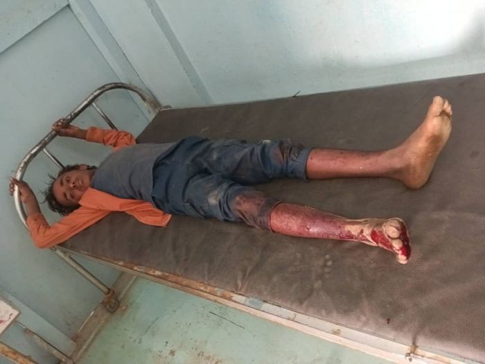 صورة" إصابة طفل بانفجار جسم متفجر من مخلفات الحوثيين في حيس.