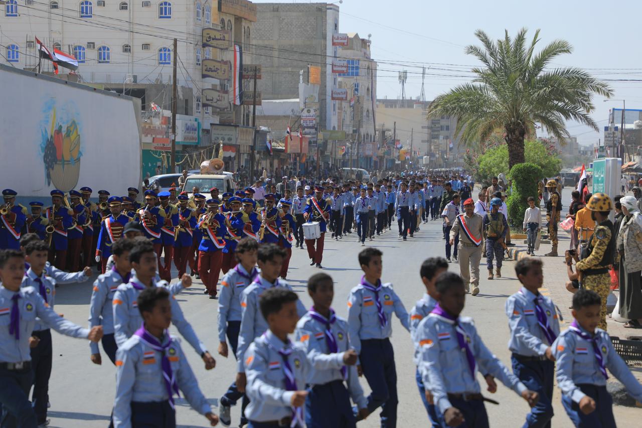 الفرق الكشفية والموسيقى العسكرية تجوب شوارع مأرب لمشاركة الشعب أفراحه بالأعياد الوطنية