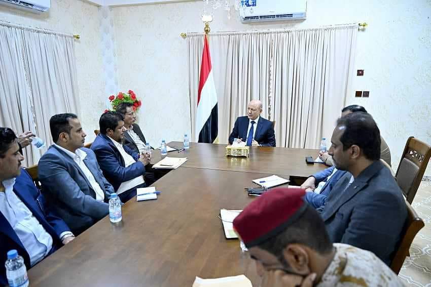 رئيس مجلس القيادة الرئاسي يعقد اجتماعاً بقيادة السلطة المحلية والمكتب التنفيذي لمحافظة المهرة. .