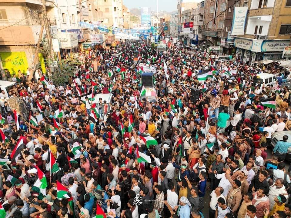 شهدت عدد من المدن اليمنية وقفات إحتجاجية وتظاهرات حاشدة شارك في الألاف للتنديد بجرائم التي يرتكبها الإحتلال
