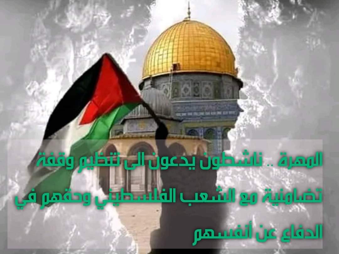 المهرة .. ناشطون يدعون الى تنظيم وقفة تضامنية مع الشعب الفلسطيني وحقهم في الدفاع عن أنفسهم. ..