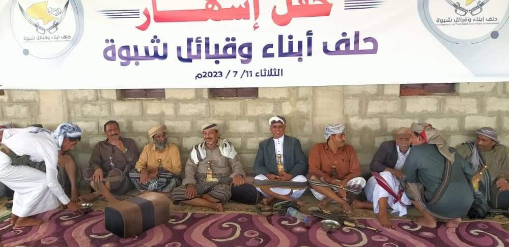 اشهر صباح اليوم في مديرية مرخة السفلى، حلف أبناء وقبائل شبوة برئاسة الشيخ علي حسن بن دوشل النسي بحضور مشائخ