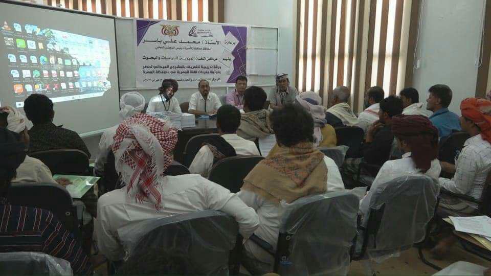 أقام مركز اللغة المهرية للدراسات والبحوث بمحافظة المهرة، ورشة تدريبية للتعريف بالمشروع الميداني لحصر
