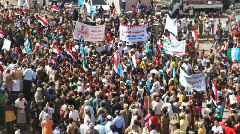طوفان جماهيري تهامي لتوحيد الصف والمطالبة باستكمال تحرير الحديدة من الارهاب الحوثي