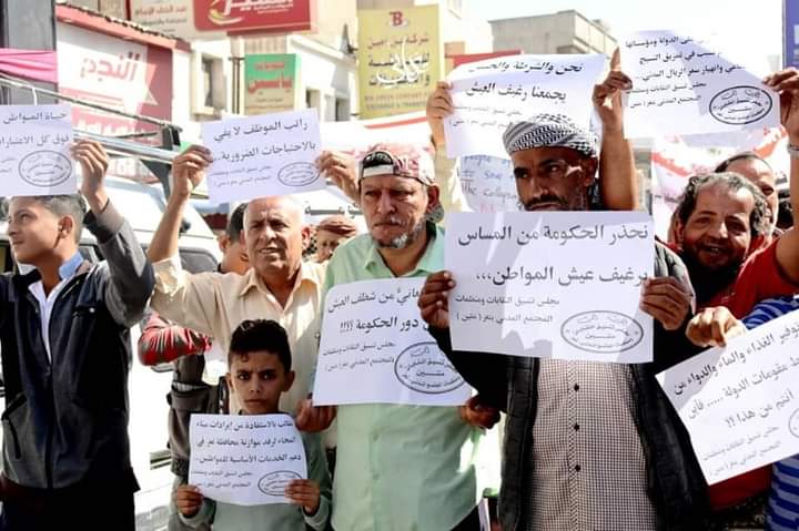 تظاهر المئات من أبناء محافظة تعز، اليوم الأربعاء، تنديدا بتردي الأوضاع المعيشية، وانهيار العملة الوطنية.