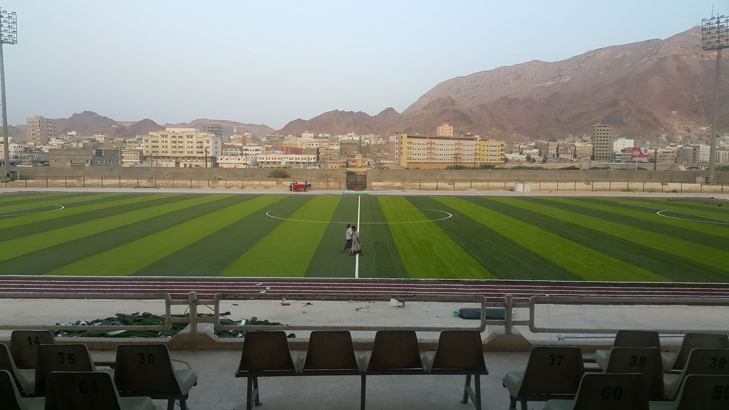 المكلا / جمعان دويل لوحة جمالية رسمها أبناء حضرموت عصر اليوم الجمعة بملعب الفقيد بارادم بمدينة المكلا