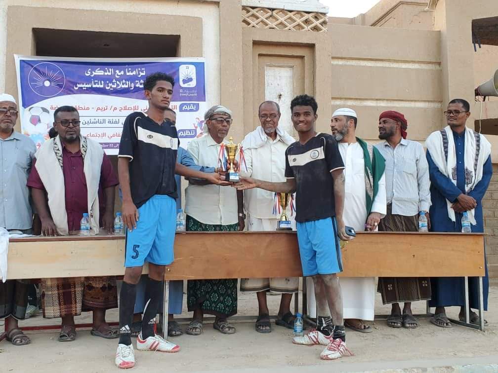 اختتم التجمع اليمني للإصلاح بمنطقة الريضة جنوب مدينة تريم، في محافظة حضرموت الدوري الرياضي للناشئين