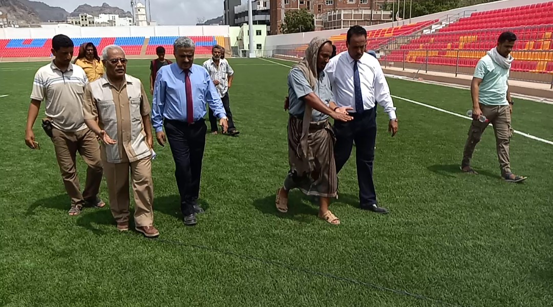 تفقد سير العمل في مشروع إعادة تأهيل وتعشيب ملعب الشهيد الحبيشي من قبل مكتب وزارة الاشغال بعدن...